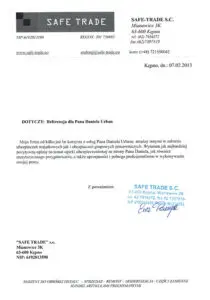 Potwierdzamy że współpraca z Broker Ubezpieczenia przyniosła naszej firmie realne i wymierne korzyści z zakresie kompleksowej ochrony majątku firmy oraz zabezpieczenia pracowników.Z pełnym przekonaniem polecamy firmę Broker Ubezpieczenia wszystkim przedsiębiorcom, którzy szukają solidnego wsparcia w zakresie ubezpieczeń...Firma Broker Ubezpieczenia wyróżnia się indywidualnym podejściem do klienta, szeroką ofertą ubezpieczeń dopasowanych do specyfiki naszej działalności.Polecam tą firmę wszystkim przedsiębiorcom którzy chcą zyskać czas i pewność w obszarze ubezpieczeń.